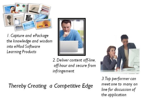 This eLearning System and Method provides you the ability to pass on that packaged wisdom back into the organization in a way that it can be effectively integrated and applied throughout your organization... for when retention and results count!